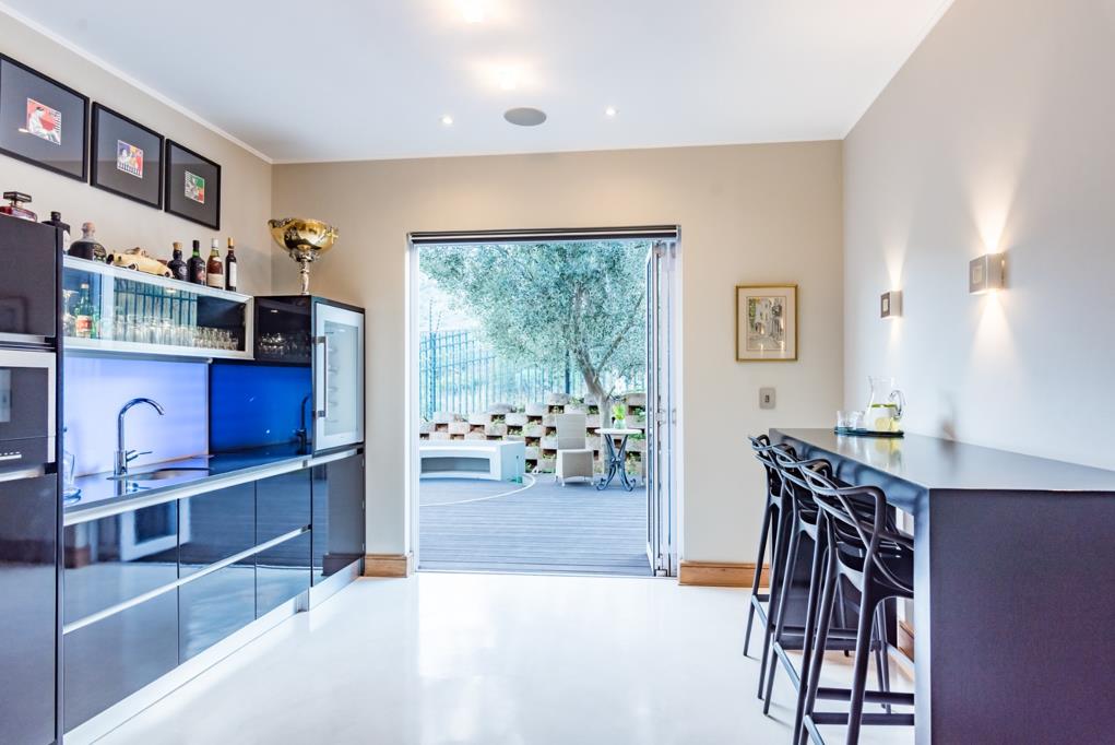 Culinary enthusiasts will delight in the gourmet kitchen, outfitted with exclusive Gaggenau appliances including a wine cooler, fridge, freezer, ice maker, steam oven, micro-oven, coffee machine, 2x large ovens, 2 x warmer draws, tepenyake, 2 plate induction stove and 5 gas hobs, with carbon filter water dispenser. The separate scullery has an impressive large sink and additional 2 side by side sinks, with built in under counter dishwasher and washing machine/tumble dry combo.