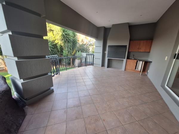 Outdoor living is effortless with a covered patio, featuring a built-in braai, leading to a low-maintenance garden and sparkling swimming poola peaceful oasis for relaxation and entertaining.