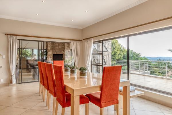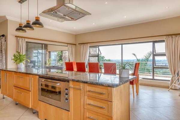 Upon entering, youre welcomed by a grand double-height foyer that leads seamlessly into a spacious, open-concept living area. The well-appointed kitchen is fitted with a large central island, generous cabinetry, and a scullery/pantry for added convenience. The kitchen opens effortlessly into the dining and indoor braai room, both of which lead to a generous balconyperfect for alfresco dining while taking in the stunning panoramic views.