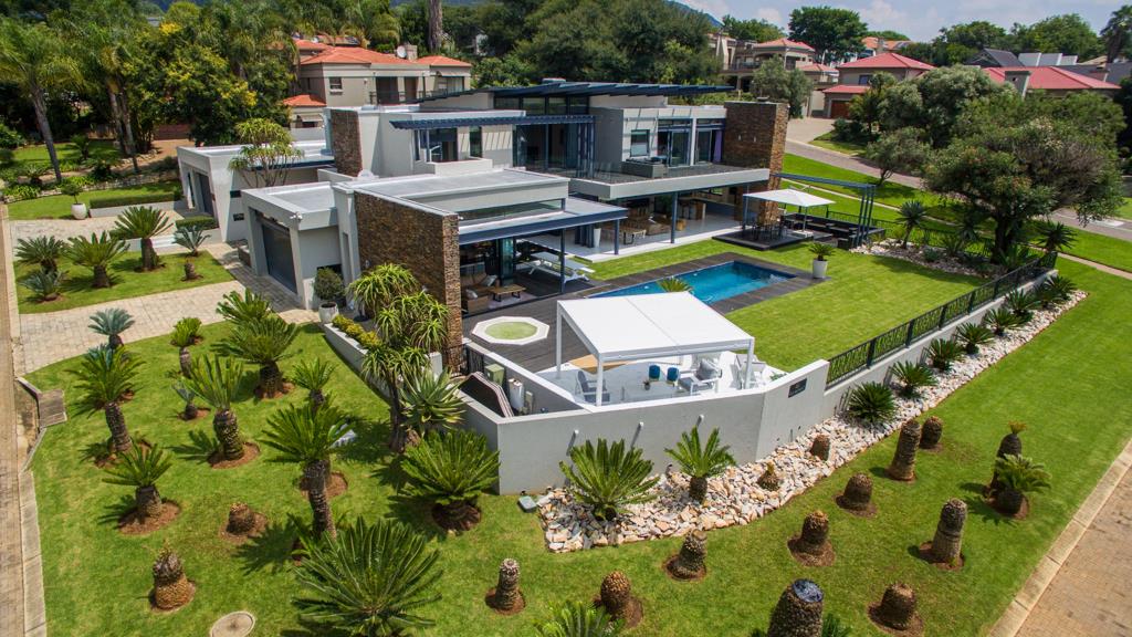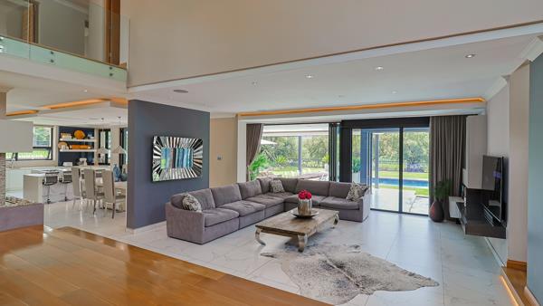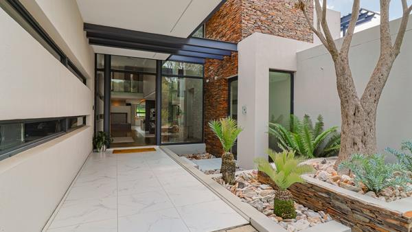 Nestled on a sprawling 1287-square-meter estate, this exquisite 715-square-meter home epitomizes cutting-edge technology and modern luxury. From the moment you enter through the grand double-volume entrance, you are greeted by an open-plan living area that seamlessly blends indoor and outdoor living. The lounge, featuring stacker doors, opens up to the most stunning garden, creating a serene and inviting atmosphere.