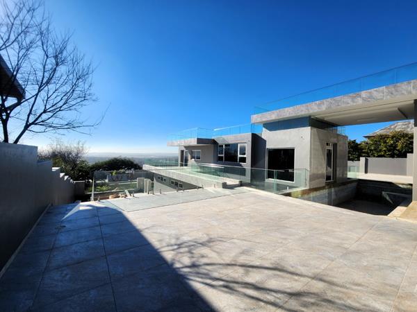 The modern open-plan kitchen, dining, and living areas flow effortlessly toward the entertainment space. A beautiful glass bridge connects the entertainment area to the main house, gracefully suspended over a sparkling swimming pool an architectural feature that brings sophistication and charm to the home.