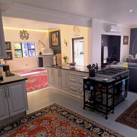 Step inside to an expansive open-plan layout designed for sophisticated living and entertaining. The residence boasts two open sitting lounges, a TV Room, a dedicated dining area, and two guest bathrooms on the ground floor providing ample space and convenience for family and guests. The well-appointed kitchen features light cabinetry, a centre island, and a gas stove, seamlessly flowing into a vibrant breakfast nook. A standout feature is the unique built-in pizza oven, perfect for culinary enthusiasts and social gatherings. The stunning mosaic lights, high ceilings, and abundant natural light from large windows enhance the home''s unique character.