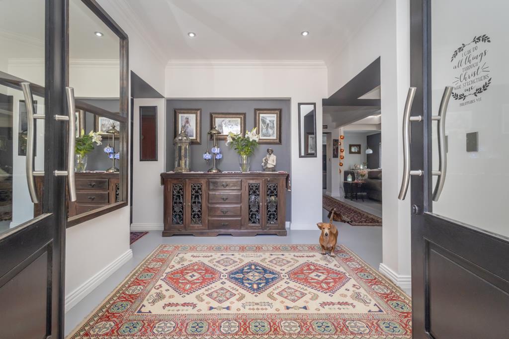 Discover an exceptional blend of grandeur and comfort in this magnificent 490 sqm residence, perfectly positioned on an 864 sqm stand in the highly sought-after Featherbrooke Estate. From the moment you arrive, the homes striking facadedefined by its arched entrance, stately columns, and charming exposed brickworksets the tone for the sophisticated living that awaits within. Mature gardens and a secure wrought-iron gate further enhance the sense of privacy and exclusivity.