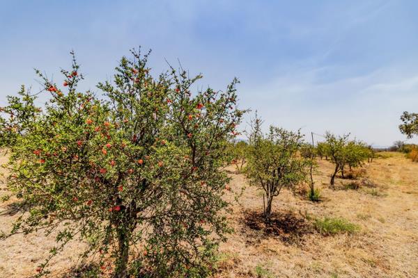 Beyond its natural beauty, this property is a powerhouse of opportunity. A thriving pomegranate orchard, complete with drip irrigation, contributes to sustainable farming. The estate boasts impressive water resources, including 100,000 litres of freshwater storage and 600,000 litres of irrigation water from three boreholes (two equipped with pumps). Power is never a concern with a 100kW Eskom supply and a FAW backup generator. The administration building includes offices, a kitchen, and a self-contained flat for staff, adding to the propertys versatility.