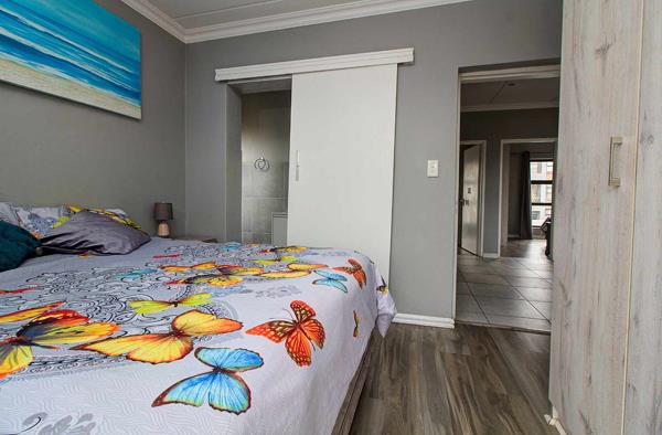 Enjoy ultra-modern finishes throughout the home, including laminate flooring in the bedrooms and tiled flooring in all other areas. The modern kitchen boasts granite tops and the entire unit benefits from solar heat pump geysers and aluminum windows, contributing to energy efficiency.