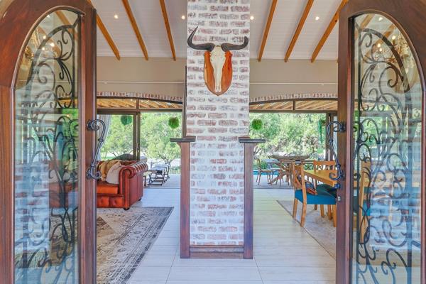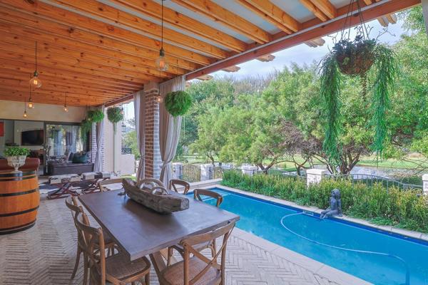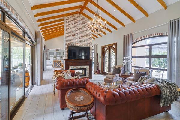 Welcome to your dream home, a masterpiece of elegance and sophistication. This exquisite 5 en-suite bedroom residence boasts top-of-the-range finishes and chandelier lighting, exuding an ambiance of timeless luxury. Step through the grand front doors into a world of opulence, where a gourmet kitchen awaits. Equipped with Caesar-stone countertops, a gas oven, and a centre island, this kitchen is a culinary enthusiast''s delight. The spacious dining room and lounge, adorned with magnificently exposed beams and a dual fireplace, provide an inviting space for gatherings with family and friends. Stacker doors lead to a large undercover patio, offering breathtaking views of a lush greenbelt and three serene dams.