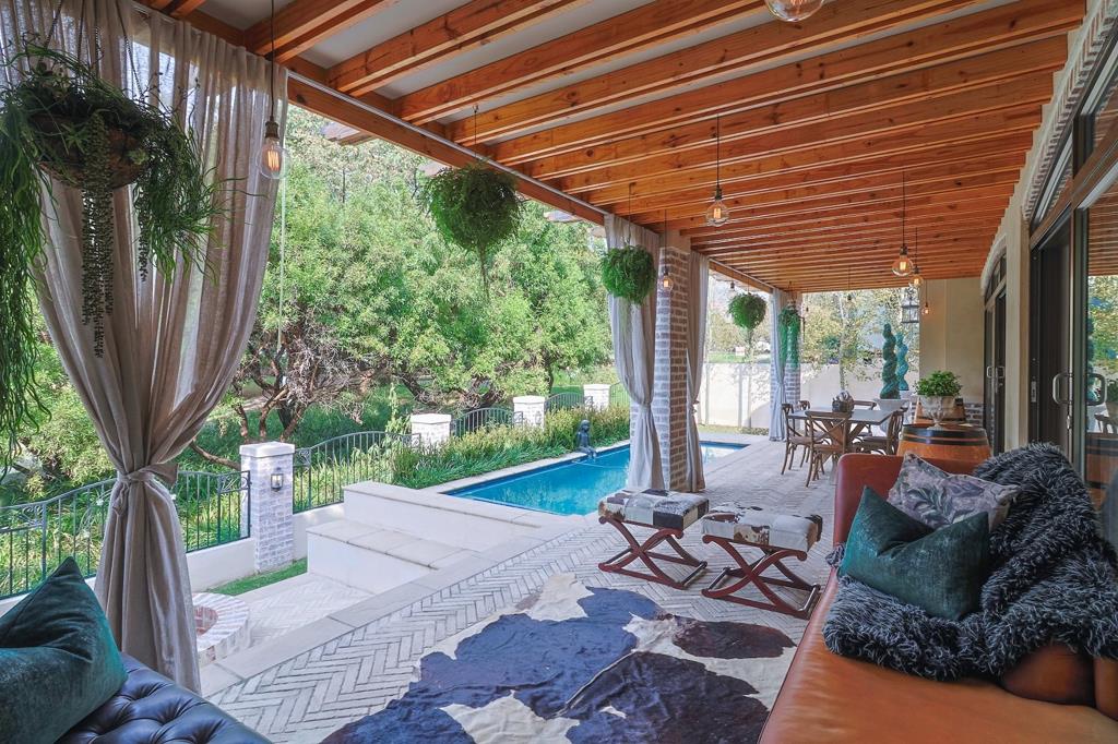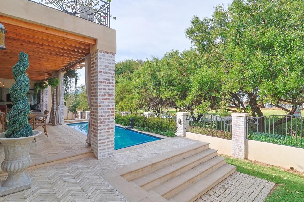 The entertainment options are endless in this home. The expansive braai room and bar area open onto a balcony overlooking a fire pit, perfect for alfresco dining and entertaining. From here, you can enjoy stunning vistas and easy access to the tranquil greenbelt parkland and serene dams. The lower level is designed for comfort and convenience, featuring two spacious en-suite bedrooms and a study. A well-designed wine cellar, a state-of-the-art cinema room, and a separate gym cater to all your leisure and wellness needs, ensuring every moment spent at home is one of indulgence. Upstairs, discover three luxurious en-suite bedrooms. The main bedroom is a true sanctuary, complete with a cozy fireplace, a lavish dressing room, and a stunning bathroom. This beautiful retreat opens onto a private balcony, providing panoramic views of the greenbelt areas, a perfect spot to start or end your day. This home represents the pinnacle of luxury living, with meticulous attention to detail and unparalleled elegance in every corner. Additionally, a 10kVA inverter and battery system ensure uninterrupted comfort during unexpected outages. Indulge in the ultimate luxury lifestyle within this magnificent home, where every element has been thoughtfully designed to offer an unparalleled living experience.