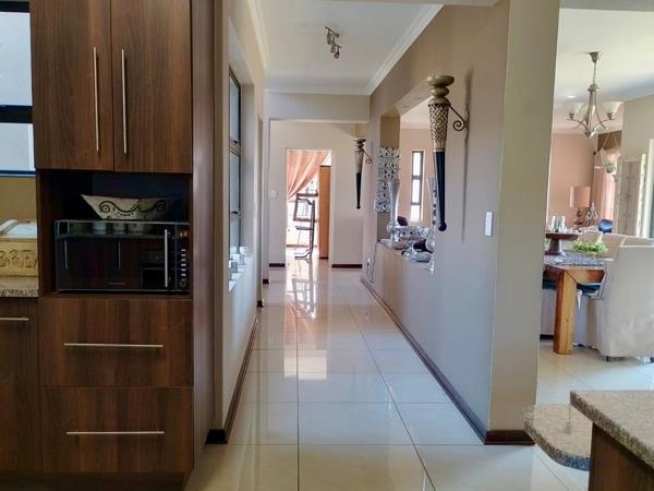 A dedicated dining area flows effortlessly to the large garden with a built-in braai great for indoor-outdoor living.