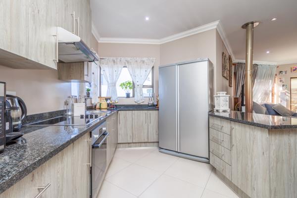 This heartfelt single storey house in a secure estate near Featherbrooke Estate, offers a charming lifestyle for the whole family. Boasting a double garage, 3 spacious bedrooms all with air cons, open-plan kitchen, with pantry and scullery, open-plan lounge with cosy fireplace, and dining area. The outdoors begs for visits with friends, and enjoying the boma and sparkling pool. The staff accommodation can also be used as an outside office.