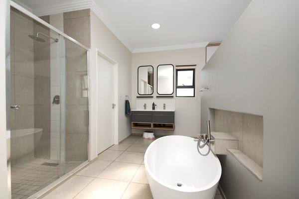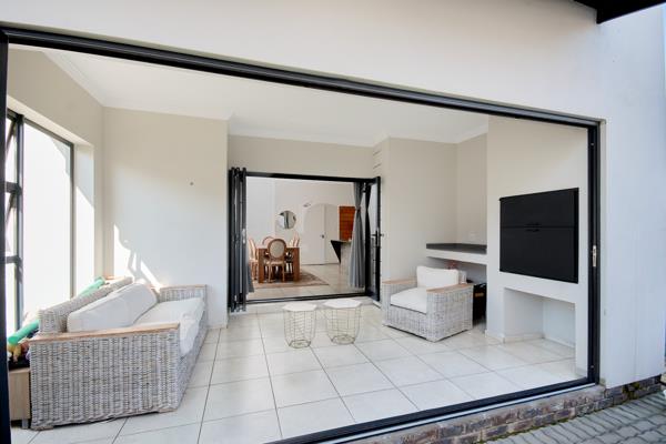 Experience the benefits of off-grid living with an inverter and solar panels, complemented by a solar geyser, ensuring energy independence and reduced utility costs. The double automatic garage provides convenient access directly into the house.
