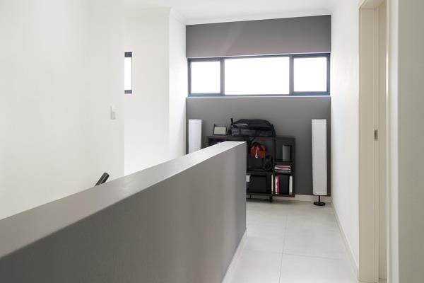 Upstairs you will find all three bedrooms along with a well appointed study, creating the perfect balance between family comfort and functional living. The main bedroom includes built in cupboards and a modern en suite bathroom, while the remaining bedrooms share a neat full bathroom finished in calm, neutral tones.