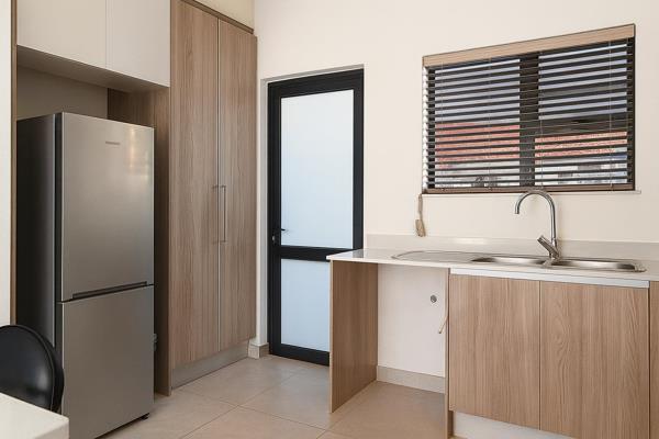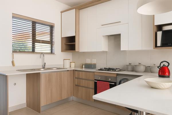 The open plan design creates a bright and inviting space that connects the kitchen, dining and living areas with ease. The kitchen is both stylish and practical, featuring sleek cupboards, a built in hob and a cozy breakfast nook that is perfect for family meals. Glass sliding doors fill the home with natural light and lead out to a private garden, ideal for weekend braais, playtime or simply relaxing outdoors.