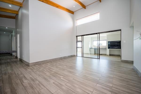 Discover an exquisite modern sanctuary in secure Estate. This modern family home offers 3 sunny bedrooms with build-in-cupboards. The master suite with own full on-suite-bathroom with bath and shower. The two other bedrooms is service by full family bathroom with bath and shower. There is a study. The bedrooms lead onto enclose patio with sliding doors. The kitchen is well fitted with lots of cupboards. The is a gas stove and 2x ovens. Separate scullery with lots of extra cupboards. The kitchen is open plan to dining area. There is a formal lounge. The enclose entertainment area offers large space for dining and lounge area with a build-in-braai and basin. There are large sliding doors that open onto garden from sunny entertainment. Double automated garage that leads into unit and parking Infront of garage. There is an outside toilet. This home offers pre-paid water and electricity. 2 Yoyo tanks and pump. This modern family home is in estate with excellent security and offers a play park for kids. This is a must view home. Phone today to view!!!!