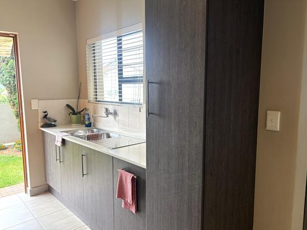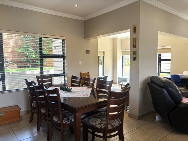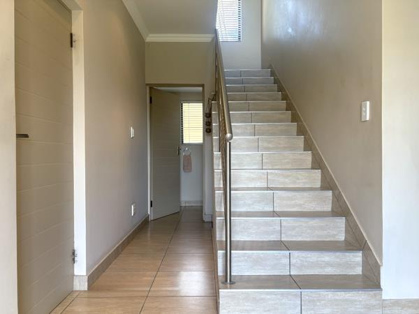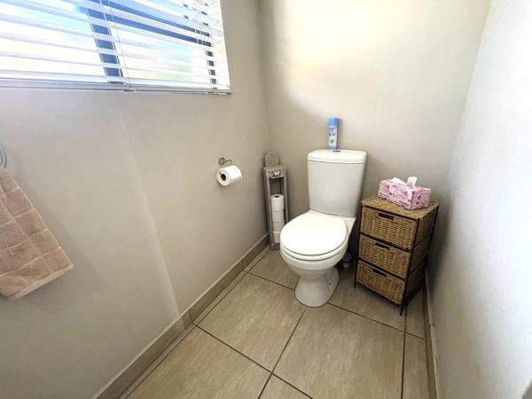 From the moment you step inside, you are welcomed by a light-filled, contemporary open-plan layout. The kitchen, dining area, TV lounge, and braai room flow seamlessly together on the ground floor, creating an inviting space ideal for hosting family gatherings or relaxed evenings with friends. A conveniently positioned guest bathroom completes the lower level.