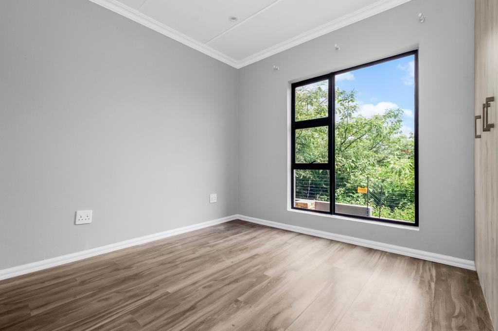 The apartment features three generously sized bedrooms and two modern bathrooms, including a main en suite. The open-plan living area is light and welcoming, opening onto a covered balcony complete with a built-in braai, perfect for relaxed entertaining or unwinding after a long day.