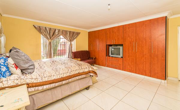 The property boasts 4 massive bedrooms all fitted with BIC and fully tiled. The main bedroom has an en-suite with a shower and door leading to the main garage.