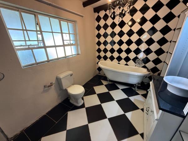 The main house has numerous options. Lounge and dining room or TV room with a study. Then there is the covered braai area with beautiful views. The kitchen is spacious enough to accommodate any and all appliances and more. Separate scullery. Then you have 3 bedrooms with 2 bathrooms. One being the main en suite. The bedrooms all have built in cupboards.