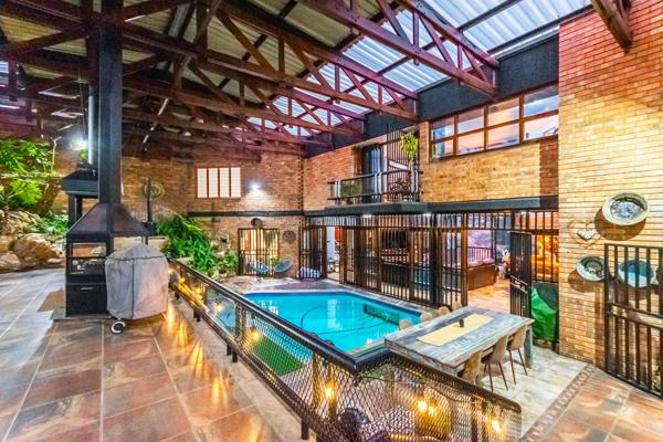 Indoor entertainment paradise: braai room with pizza oven, gas braai, jacuzzi & rock-inspired finishes