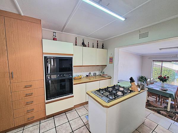 Well-equipped kitchen with gas stove, eye-level oven, ample cupboards