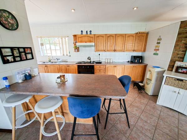 Adding to its appeal is a separate outside bedroom with its own bathroom and a covered patio, perfect for guests, extended family, or a private work-from-home setup. The property also includes a covered porch with a built-in braai, a double garage one door automated, and additional parking for two vehicles. A neat, manageable garden completes the picture, offering a peaceful outdoor space without demanding upkeep. This is a well-rounded home that delivers comfort, security, and versatility.