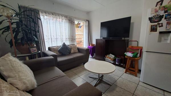 Discover this inviting 2-bedroom, 1-bathroom residence nestled within a secure complex in Kenmare, Krugersdorp. Spanning a comfortable 50 sqm, this home offers practical living spaces designed for ease. The main living area features durable tiled flooring and benefits from ample natural light streaming through a large window, providing direct access to a small outdoor space. This versatile area accommodates comfortable seating and includes a modern refrigerator, making it a central hub for daily activities.