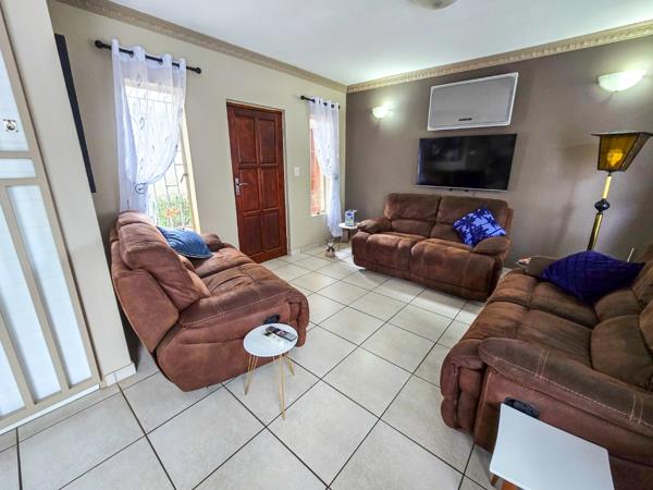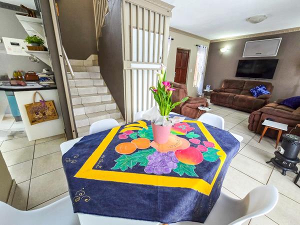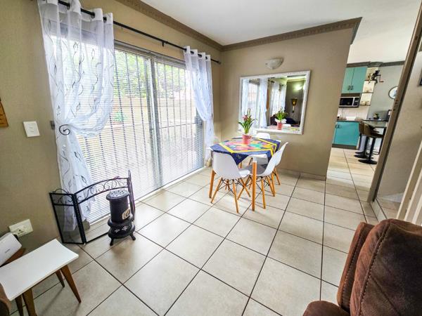 The elegant, neat and well-maintained townhouse situated walking distance to Momument High School offers the following: Three modern bedrooms that is upstairs with carpet and tiled flooring and ample cupboard space. Two modern bathrooms with bath, shower and basin. Downstairs there''s a guest toilet for your convenience.Open plan lounge with air conditioner unit and dining room with tiled flooring. Modern kitchen with ample cupboard space, under counter oven and gas hob, breakfast nook and washing machine connections. Double automated garages with direct entrance in the courtyard Double carports for extra parking space Outside is also a braai area with a build in braai for family gatherings.