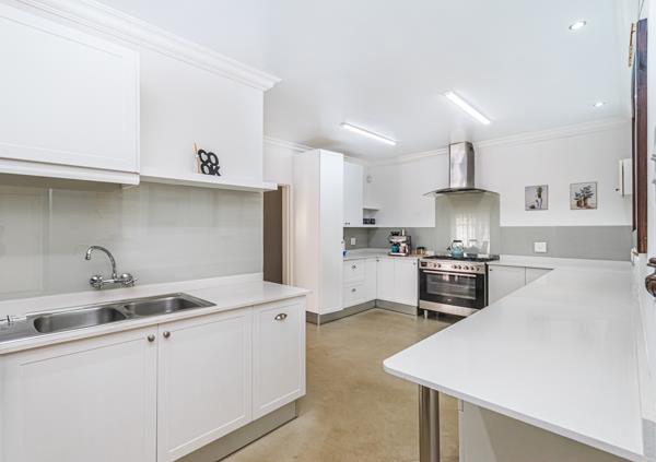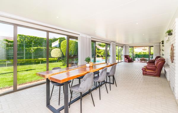 The outdoor entertainment area includes a built-in braai and overlooks the koi pond adding a touch of tranquillity and charm as well as the pool and beautifully maintained garden. It is the perfect spot for hosting family and friends.