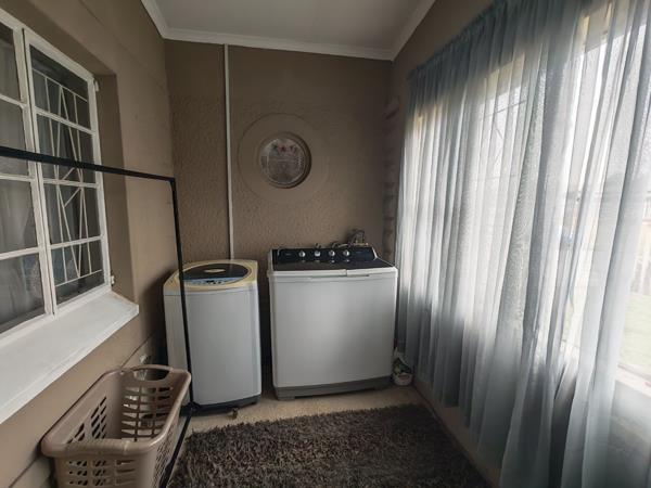 Adding to its appeal, the property includes a separate flat with an open-plan living and bedroom space, kitchenette, and bathroom ideal for guests or rental income. Secure parking is provided by a garage, a carport for three vehicles, and additional space for two more. With prepaid water and electricity, full boundary walls, and a location close to shops and schools, this home offers unbeatable value and security. Schedule your viewing today!