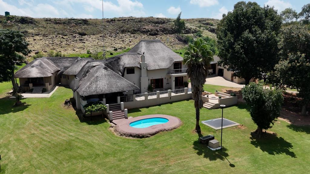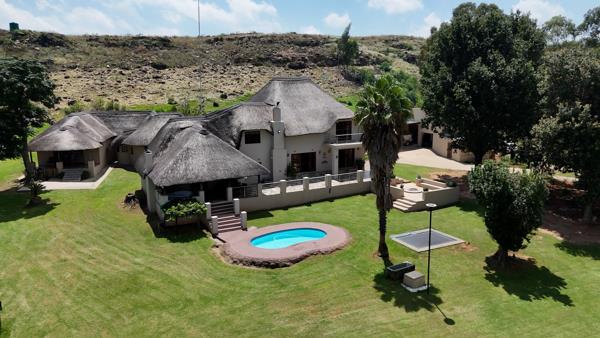 Welcome to your dream lifestyle farm, just an hours drive from Johannesburg and Pretoria! Nestled in the picturesque valley of Magaliesburg, this exquisite thatched roof residence offers a perfect blend of luxury and serenity.