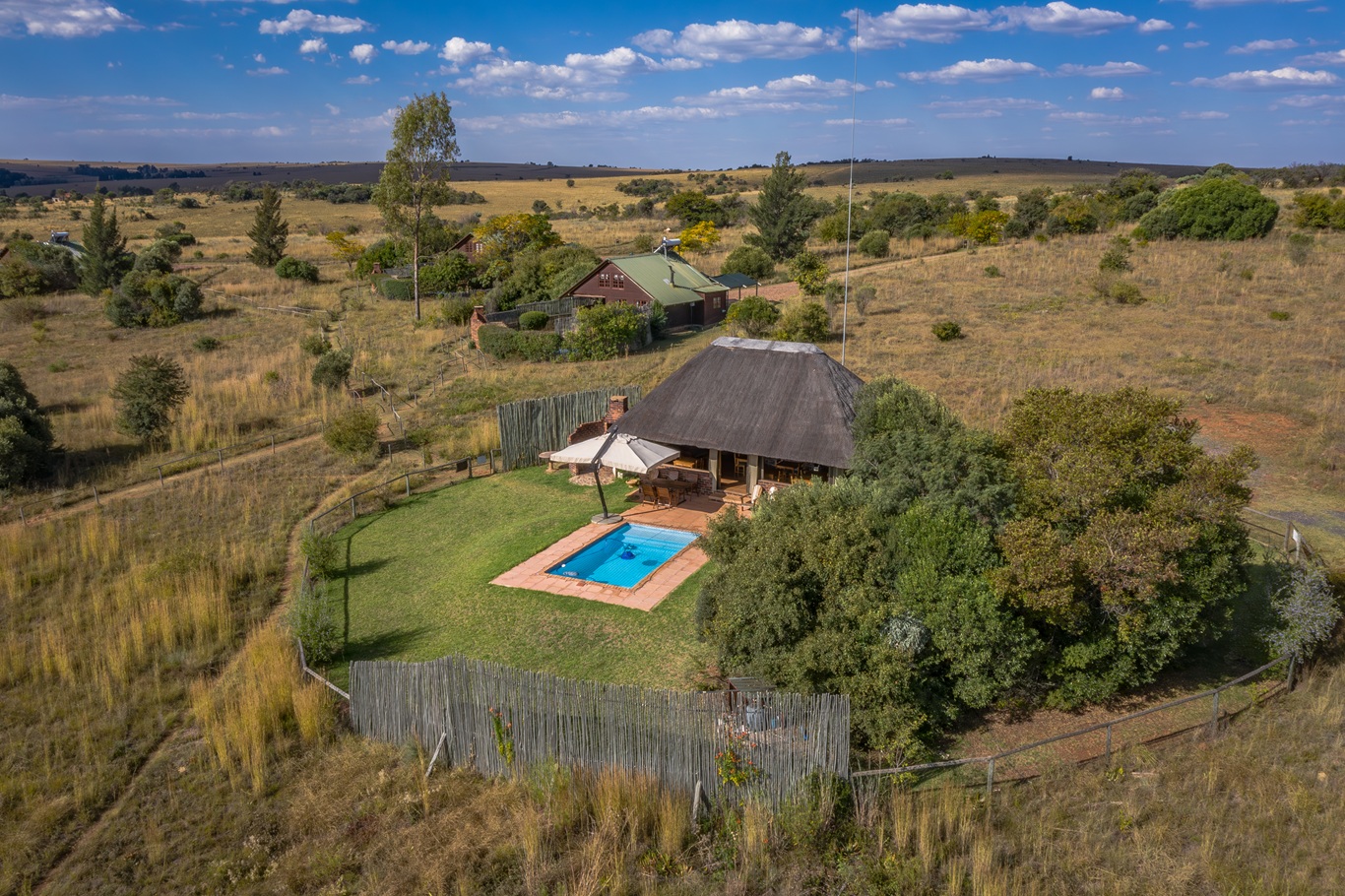 Perched on a koppie just outside Magaliesburg, offering uninterrupted 360-degree views of rolling hills, farmland, and mountain vistas.