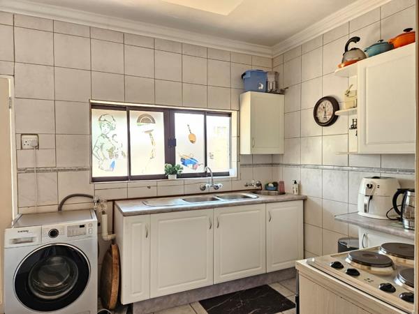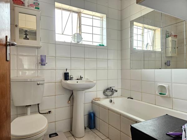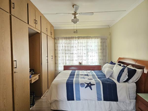 Accommodation comprises three spacious bedrooms, with the main bedroom offering the convenience of an en-suite bathroom, complemented by a second bathroom. Each bedroom is designed for comfort, featuring practical built-in cupboards for extensive storage and tiled floors last bedroom receives good natural light, creating a versatile personal space with traditional wood finishes.