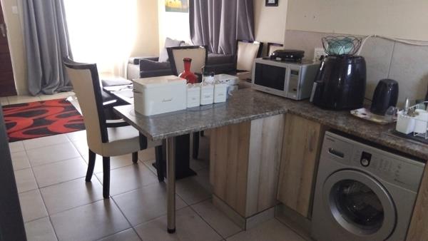 The home offers 3 spacious bedrooms and 2 modern bathrooms. The stylish granite-top kitchen includes built-in cupboards, an under-counter oven, and a hob. The open-plan layout features a cozy breakfast nook, perfect for casual meals and family time.