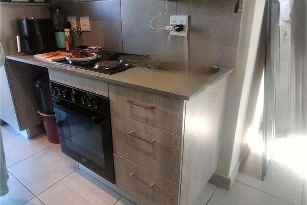 On entering this lovely home, you are welcomed by an open plan living area with a modern kitchen offers ample work and storage space, an electric hob, undercounter oven and extractor fan as well as space for a fridge and wet appliance. The house offers three bedrooms with built-in cupboards as well as two well-appointed bathrooms, main en-suite ensuring privacy for all.