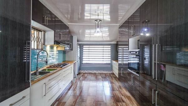 The elegant kitchen is both stylish and functionalperfect for family meals and entertaining.