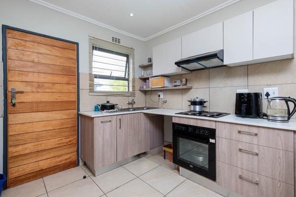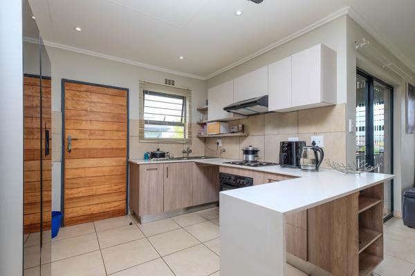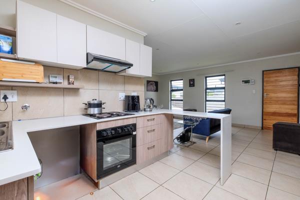 The home boasts an open-plan kitchen and lounge, creating an easy flow for everyday living. Sliding doors lead out to a covered stoep, ideal for relaxing or weekend braais.