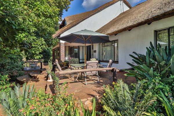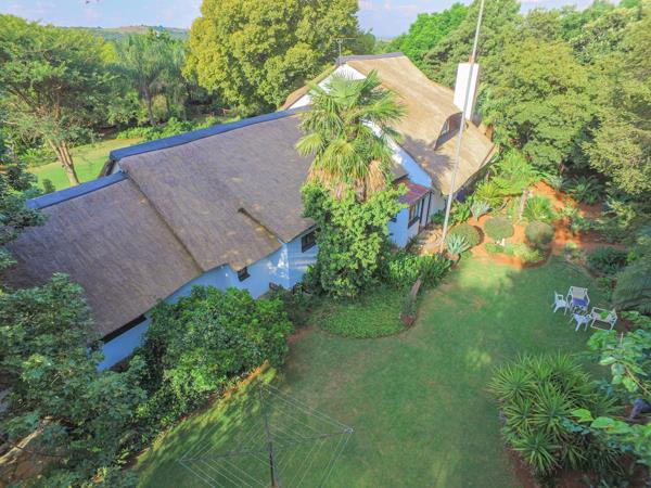 There are 3 houses on this amazing property. The garden is a must-see! Two strong boreholes and Eskom power are available. The main house consists of 5 bedrooms with a main en-suite, and the second bathroom has a separate toilet. The scullery and laundry room can accommodate all your appliances. The spacious pantry is next to the kitchen. Well-designed kitchen with beautiful wooden cupboards and granite tops with plenty of storage space. There is an office, lounge, dining room, and entrance hall, and sunroom. The built-in bar area opens to a patio. The staircase leads to a spacious area consisting of a bedroom, lounge, and work area. The snooker room has its own built-in bar with a boma under the giant trees. A big storeroom has an extra room next to it that can be used as an office or domestic room.