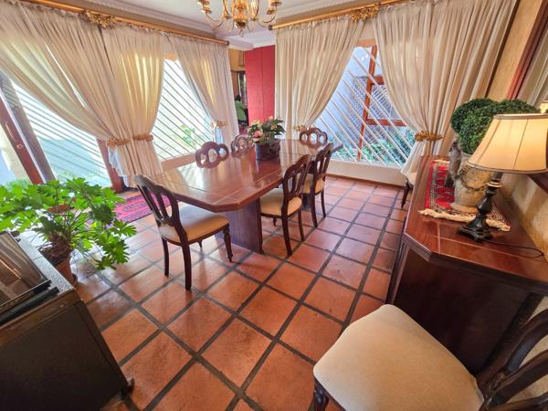 Nestled in one of Noordheuwel''s most sought after area, this immaculate family home offers elegance, space and comfort, a true gem that rarely comes on the market. Upon entering, you are welcomed by an impressive entrance hall that sets the tone for the rest of the home. A separate formal lounge features a cozy fireplace, creating a warm and inviting atmosphere perfect for family gatherings or quiet evenings. The expansive dining room flows seamlessly into a well-appointed kitchen, complete with ample cupboard space, a breakfast nook, under counter oven and hob, and a separate scullery with connections for both washing machine and a dishwasher. The spacious family room opens into a covered patio with a build in braai, overlooking a sparkling swimming pool and offering breathtaking views, ideal for entertaining and relaxed outdoor living. The home offers four generously sized bedrooms with carpet flooring and build-in cupboards. The luxurious main bedroom includes a walk-in closet and a full en suite bathroom. A second en suite bedroom and two additional guest toilets provide comfort and convenience for family and guests. Upstairs a versatile teen pad, gym room or work from home office opens onto a balcony boasting stunning views, a perfect retreat for productivity or relaxation.