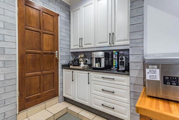 Perfectly Located Home in Chateau de Vie. This perfectly located single level home in Chateau de Vie with expansive river and garden views afford 3 spacious bedrooms, 3 bathrooms (2 en-suite), study or guest room, newly, elegantly renovated open plan kitchen with separate scullery and ample cupboard space, dining room, TV / family room with wood burning combustion stove and indoor braai room providing access to the garden / pool area through stacking doors and sliders.