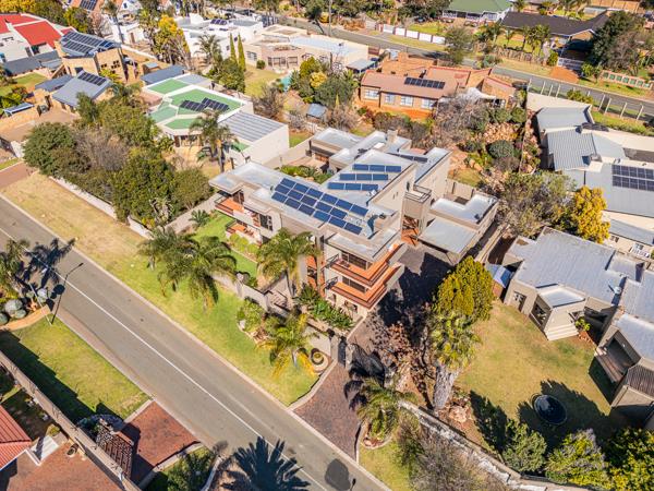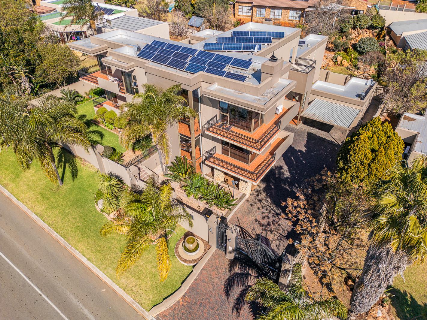 Located at the ever-popular 33 Kathleen Street in Noordheuwel, this exceptional family home offers a seamless blend of contemporary living, energy efficiency, and advanced security. Designed with versatility in mind, it features five spacious bedrooms, a dedicated study, three full bathrooms, a guest loo, and a separate one-bedroom flatlet complete with its own kitchen and bathroom. The home is powered by 3-phase electricity and boasts a 15kVA inverter system supported by 38 solar panels, ensuring energy efficiency throughout. A solar-connected heat pump keeps the swimming pool pleasantly warm, while a full water backup system guarantees consistent supply. The kitchen is a culinary haven with a gas stove, scullery, separate laundry, and a walk-in pantry. Living areas are warmed by a charming wooden fireplace and cooled by inverter air conditioners in two bedrooms, the main living space, and the flatlet. All curtains are included in the sale.