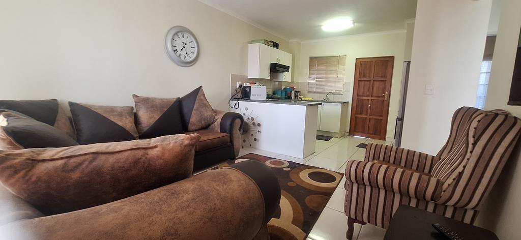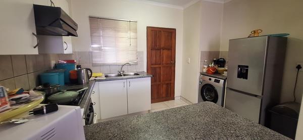 This unit is conveniently on the ground floor. The Open-plan living space leading to your own small patio will bring you joy sitting there having your afternoon coffee, looking at the sun set. The unit has an open -plan living area flowing from the kitchen. The kitchen has ample cupboard space and space for two appliances. The bedrooms are spacious with built-in-cupboards. You have one bathroom with a bath shower, basin and toilet.