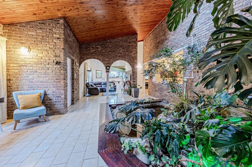 Stepping out into the garden, youll find a spacious outdoor haven with a built-in braai and a relaxing jacuzzi, perfectly tucked away among beautiful trees for privacy. The expansive garden provides plenty of space for children to play and even offers the potential to build additional structures if desired.