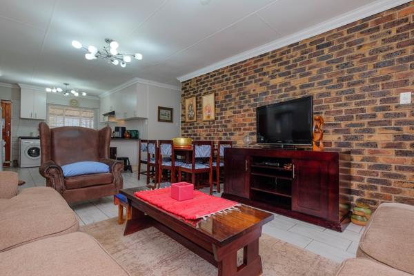 This delightful two-bedroom, full-bathroom townhouse offers modern open-plan living in the heart of Noordheuwel. Fully tiled throughout with clean, light finishes, the home provides a welcoming sense of space from the moment you walk in.