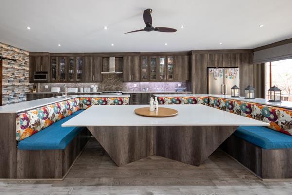 Offering 5 living areas with a mesmerising open plan kitchen with built in nook for the whole family and all your friends. Smeg 5 burner gas stove with electric oven and a walk in pantry with a farm style sliding wooden door separates the scullery and pantry from your homy kitchen and family life.