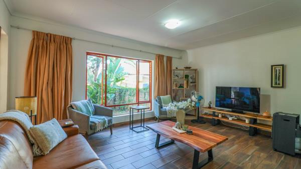 The residence features three sunny and spacious bedrooms, each offering generous cupboard space. The main bedroom boasts a full en-suite bathroom, while the other two bedrooms share a second full bathroom.