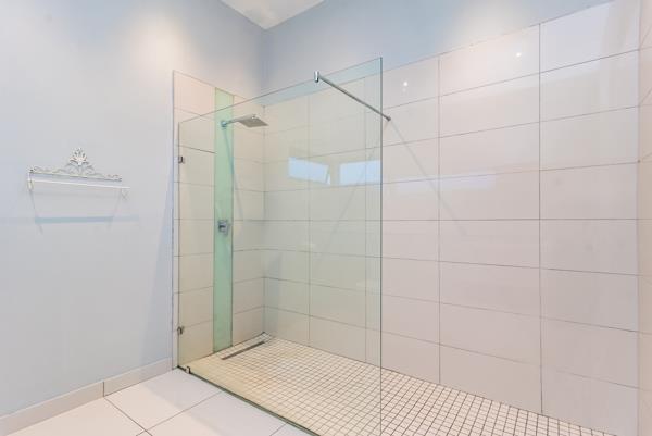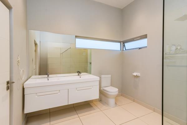 Downstairs, the lounge and dining areas spill out through stacker doors to the garden and pool. The bright kitchen keeps the mood fresh, with a gas/electric stove and separate scullery. You will also find a generous fourth bedroom on this level, a guest loo, and a private study. There is ample scope to extend from the fourth bedroom if you would like more space later.