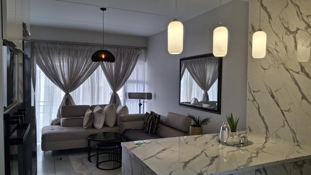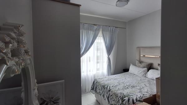 The apartment features three well-sized bedrooms and two bathrooms, including a main en-suite. The open-plan living area flows seamlessly into the kitchen, creating a practical and inviting space for everyday living. Enjoy scenic views from the apartment while benefiting from a secure, urban lifestyle estate environment.