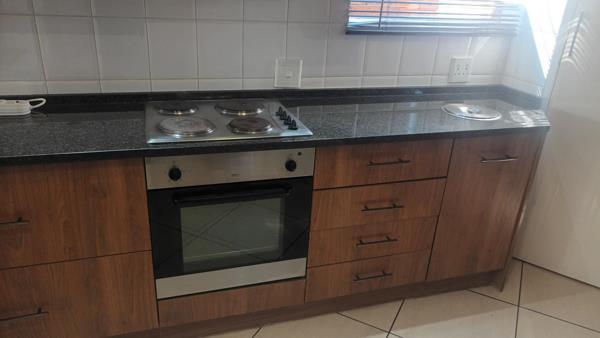 This corner unit offers a cosy private garden with lapa equipped with built-in braai and bar counter and is pet friendly for 1 small dog on approval of Body Corporate.
