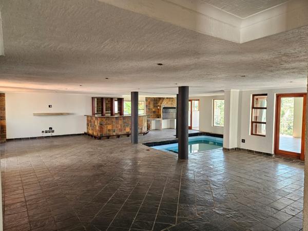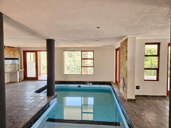 The welcoming fitted kitchen is a chef''s dream featuring stylish cabinetry, quality countertops and ample storage. The house features a spacious open plan layout, perfect for modern living and entertaining guests. This space includes a built-in bar, indoor braai and pool, creating a relaxing and airy environment. The sliding doors extend to the patio creating a seamless indoor-outdoor living while offering stunning views of the surrounding area.