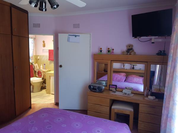 The kitchen is neat and practical, featuring ample cupboard space, a breakfast nook, and room for two appliances. The home includes three well-sized bedrooms, each fitted with built-in cupboards. The main bedroom enjoys a private en-suite bathroom with a shower, toilet, and basin, while a separate full bathroom with a bath, toilet, and basin serves the rest of the home.