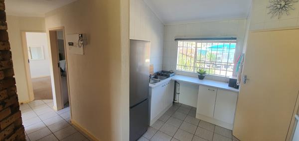 The apartment offers two comfortable bedrooms fitted with built-in cupboards, both well-sized to accommodate modern living requirements. The main bedroom is particularly generous in size, creating a peaceful retreat. A neatly finished bathroom includes both a bath and shower, providing flexibility and convenience for residents. Additional features include a single garage as well as extra parking, fibre-ready connectivity for modern digital living, and the added security of a controlled access gate within the complex.